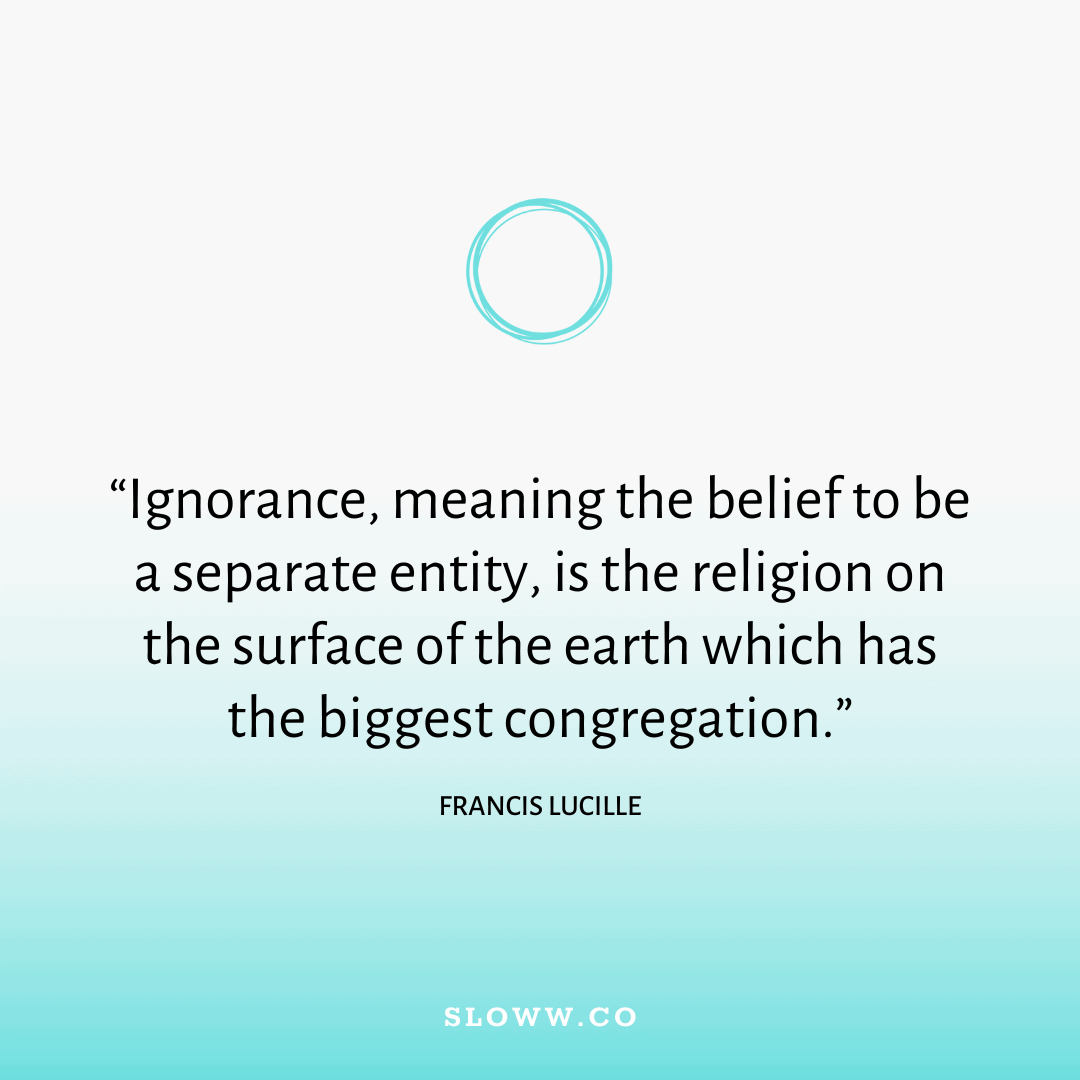 “Ignorance, meaning the belief to be a separate entity, is the religion on the surface of the earth which has the biggest congregation.” — Francis Lucille