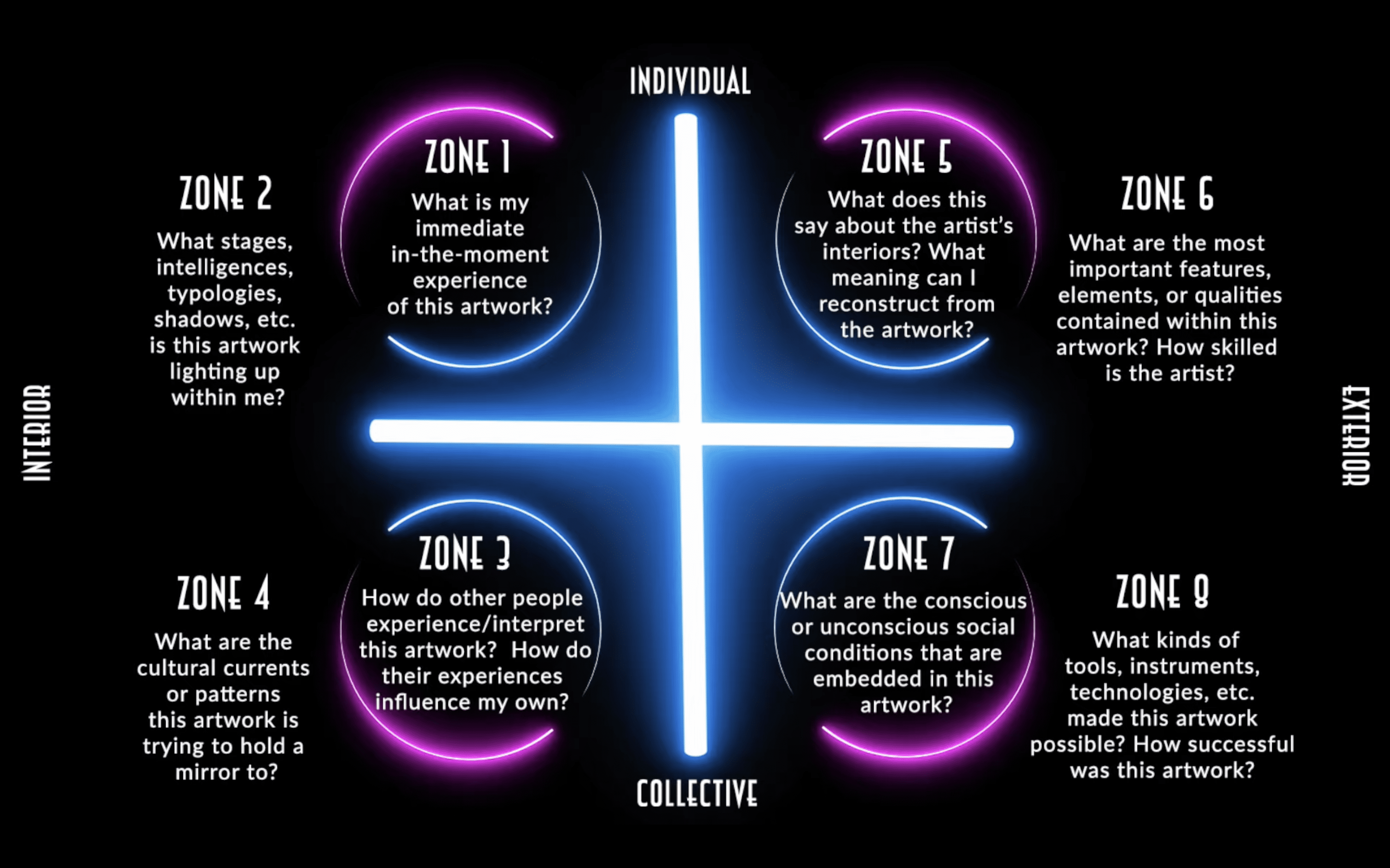 Here’s what each perspective/zone focuses on (1st visual) and an actual example using art (2nd visual):