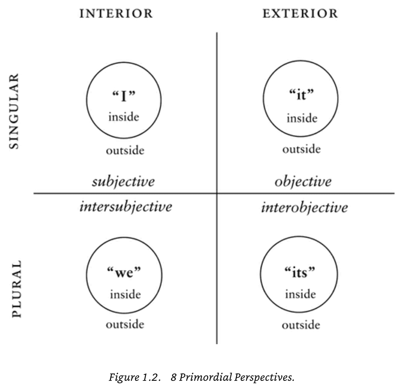 Did you know you can take at least 8 perspectives on anything? I’ve seen this referred to as “perspectival yoga,” “Integral Perspectivism,” and “Integral Methodological Pluralism.” Here’s how to visualize it: