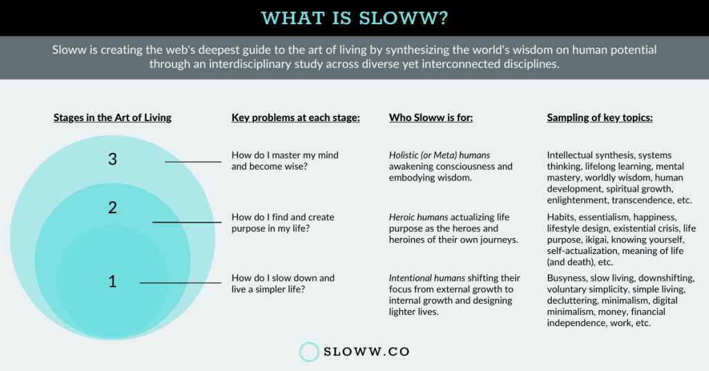- What: Sloww is creating the web’s deepest guide to the world’s wisdom through an interdisciplinary study across diverse yet interconnected disciplines.